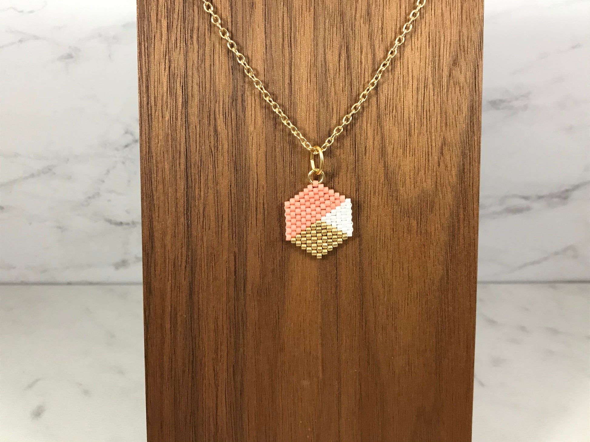 Item is made with high quality Miyuki Delica Beads. All necklaces are hand woven and finished with silver or gold plated chains and clasps. Each necklace is available in a variety of lengths ranging from 16 inches to 24 inches. If you would like a chain length that is not listed, please specify length in notes when ordering.
