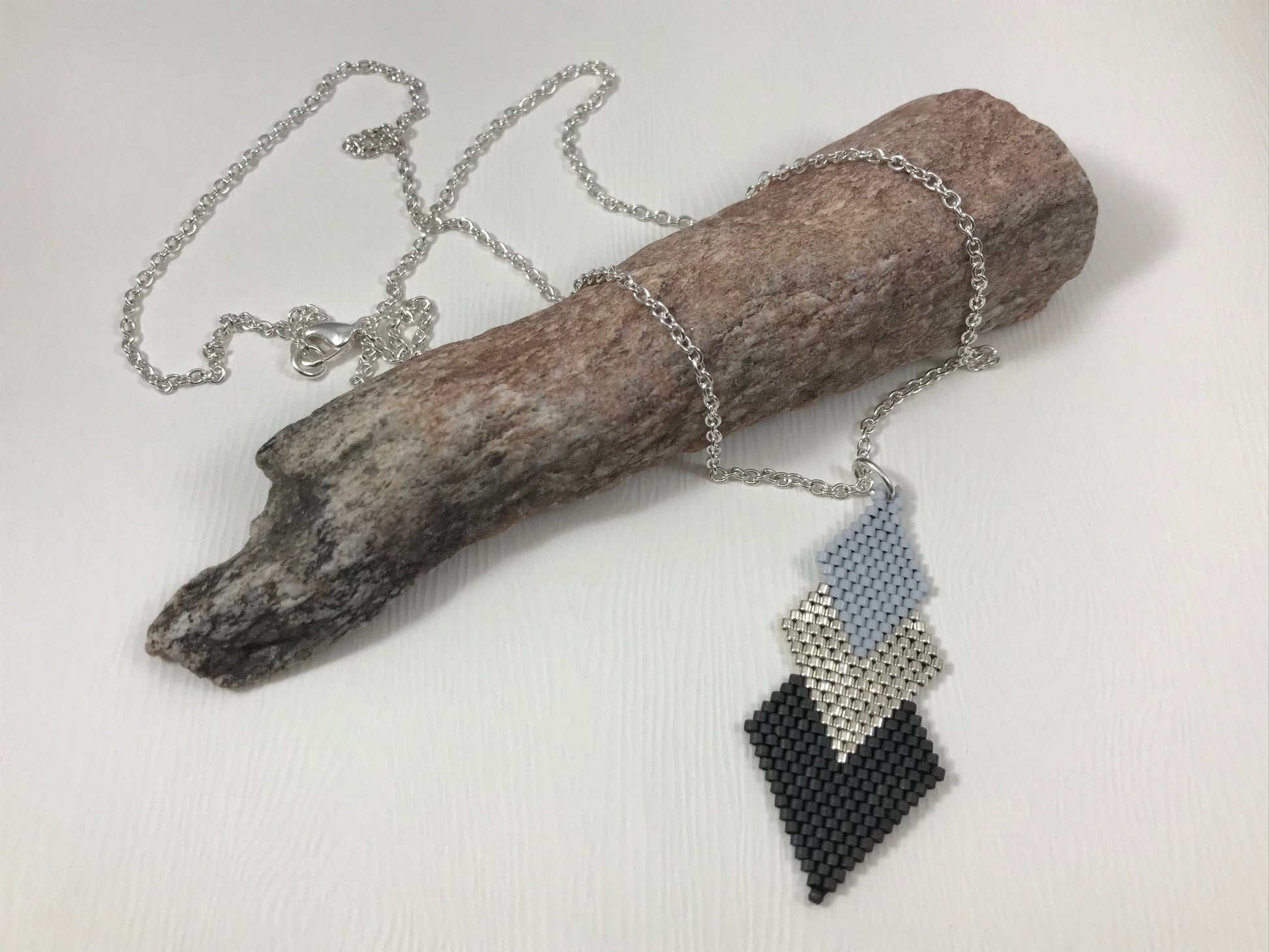 Item is made with high quality Miyuki Delica Beads. All necklaces are hand woven and finished with silver or gold plated chains and clasps. Each necklace is available in a variety of lengths ranging from 16 inches to 24 inches. If you would like a chain length that is not listed, please specify length in notes when ordering.